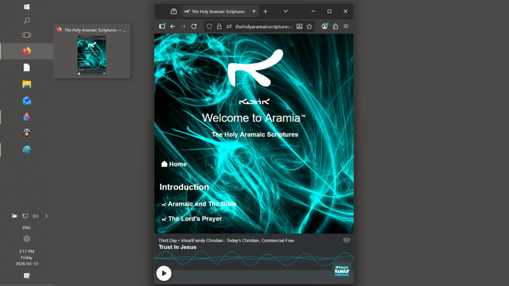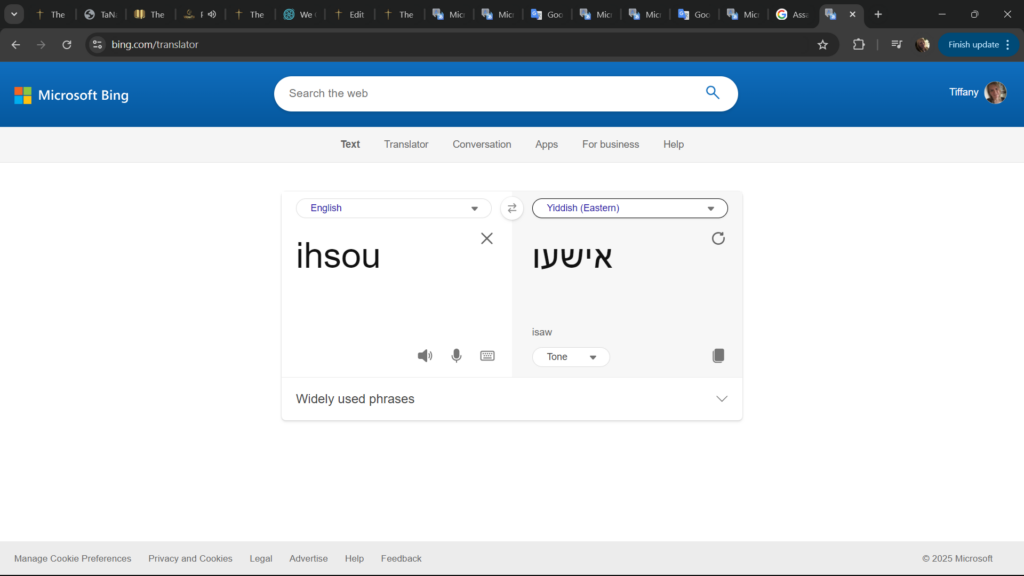 Ihsou is the name of Christ transliterated from the original Greek used in The Holy Cross Bible. Ihsou transliterated from original Greek translated to Yiddish means “Yitzchak” (Isaac). “Esou” is Coptic and means “Lamb”. Use The Windows Key on your keyboard and the left or right arrow key for Bible reading on The Windows Desktop.